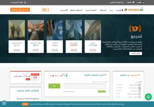 كلمات مفتاحية: منصة تجارية تعمل على توفير الفرص التجارية وحلول المعلومات للشركات المحلية والدولية . تطبيق تندرجو المصدر الأكثر شمولاً للعطاءات والمناقصات واستدراجات العروض المطروحة في الأردن من القطاع الحكومي، الخاص، المنظمات ، الجمعيات، والقاطاع العسكري في جميع المجالات بشكل يومي.