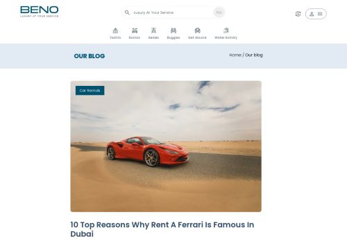 وصف الموقع: Exploring is the best thing to do. But sometimes it becomes hectic when you don't have a private car. That's why car rental services are becoming popular. There are several car rental companies in UAE. Beno.com is the best luxury rental marketplace in Dubai. If you want to rent Ferrari dubai or any other, Beno has got you covered.