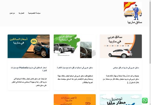 وصف الموقع: سائق عربي في ماربيا ( اسبانيا ) سائق عربي في اسبانيا مرافق دائم مع سيارة فاخرة جميعنا يرغب دائماً برحلة ممتعة وسهلة , لذلك خدمة ســــــائق عربي في ماربيا ستجعل رحلتك اكثر من ممتعة من خلال السائق العربي في مــاربيا تستطيع التجول في ماربيـا بالكامل , وزيارة بورتوبانوس والإقامة في أرقى الفنادق , والأكل في أرقى المطاعم , والسهر في أجمل المقاهي وبأسعارمميزة كما نتقدم خدمة توصيل مطارات الى كافـــة المدن في اسبانيـا نحن نرحب دائماً بكم وباستفساراتكم وذلك عبر التواصل معنا عبر الواتساب على رقم +34 666 37 01 21