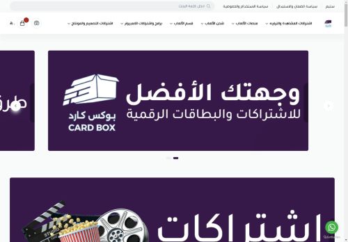 وصف الموقع: متجر كارد بوكس هو وجهتك المتكاملة لشراء البطاقات الرقمية والاشتراكات المتنوعة، تشمل الترفيه، الألعاب، البرامج، والتصميم، لتلبية كافة احتياجاتك الرقمية بسهولة وأمان.