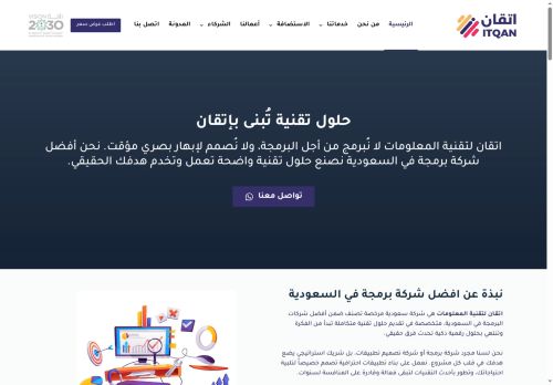 وصف الموقع: "اتقان لتقنية المعلومات هي شركة سعودية مرخصة تصنف ضمن أفضل شركات البرمجة في السعودية، متخصصة في تقديم حلول تقنية متكاملة تبدأ من الفكرة وتنتهي بحلول رقمية ذكية تحدث فرق حقيقي. نحن لسنا مجرد شركة برمجة أو شركة تصميم تطبيقات، بل شريك استراتيجي يضع هدفك في قلب كل مشروع. نعمل على بناء تطبيقات احترافية تصمم خصيصاً لتلبية احتياجاتك، وتطور بأحدث التقنيات لتبقى فعالة وقادرة على المنافسة لسنوات."