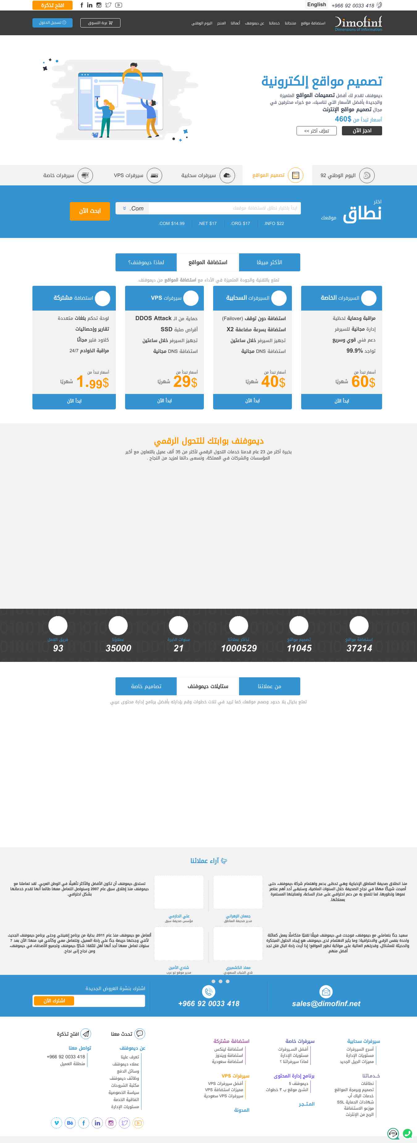وصف الموقع: شركة ديموفنف رائدة في مجال تكنولوجيا المعلومات بخبرة اكثر من ٢٠عام بسجل تجاري رقم 1010213247 في تقديم حلول رقمية مبتكرة لتحسين الجودة وتبسيط الإجراءات تماشياَ مع رؤية المملكة الرقمية في 2030 من خلال خدمات حلول تطوير المواقع وتطبيقات الجوال، إستضافة المواقع، التسويق الإلكتروني. نساعدك لبدء رحلتك الرقمية الفريدة مع ديموفنف، بداية من الفكرة إلى التصميم ثم التنفيذ