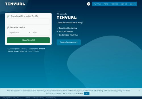 وصف الموقع: يعتبر موقع Tiny URL أحد أفضل المواقع المختصة باختصار الروابط، نظرًا لأنّه يقدّم العديد من ميزات اختصار العناوين لمستخدميه. حيث يمكن إدراج إضافة Tiny URL على شريط العنوان الخاص بالمتصفح. بما يسمح باختصار أي رابط طويل بنقرة واحدة فقط. وبالرغم من الميزات النوعية التي يوفرها هذا الموقع، إلا أنّ عيبه الوحيد يكمن في عدم قدرة المستخدم على رؤية العنوان المختصر الذي أنشأه مباشرةً.