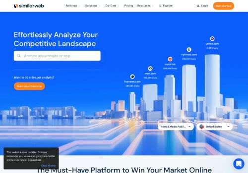 كلمات مفتاحية: سميلارويب مماثل ويب هو موقع ويب يوفر خدمات تحليلات الويب للشركات. تقدم الشركة لعملائها معلومات عن حجم حركة المرور على موقع عملائها ومنافسيها، ومصادر الإحالة التي تشمل تحليل الكلمات الرئيسية والمعلومات السكانية، و«ثبات» الموقع، بالإضافة إلى ميزات أخرى.