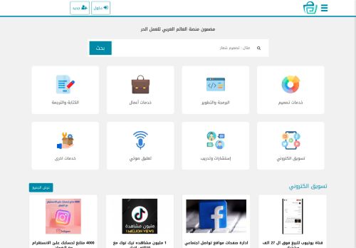 وصف الموقع: مضمون منصة العالم العربي للعمل الحر خدمات تصميم خدمات برمجة تسويق الكتروني استشارات وتدريب