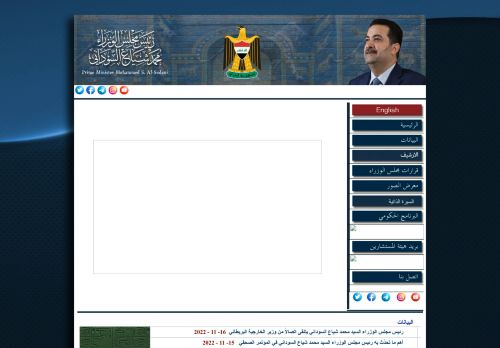 وصف الموقع: الموقع الرسمي لرئيس مجلس الوزراء العراقي محمد شياع السوداني