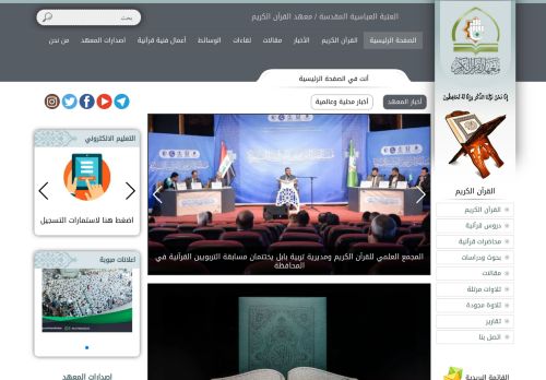 وصف الموقع: صرحٌ قرآنيّ مبارك، ومنار علم، حمل بين طياته رسالة مقدّسة، وهي رسالة تعليم القرآن الكريم، وأخذ على عاتقه نشر علوم كتاب الله المجيد ومفاهيمه وحملة الرسالة وخزان العلم أهل بيت النّبيّ في كلِّ بقعة من بقاع الوطن، فمنذ أن شعَّ نوره في الخامس عشر من شهر رجب الأصب 1431هـ ، حمل في جعبته الكثير من الرؤى النّيرة والطموحات الواعدة بهدف خلق جيل قرآنيّ ناشئ، فسخّر إمكاناته وطاقاته العلميّة في التّدبّر والبحث في علوم القرآن الكريم، وأقام العديد من البحوث والدّراسات القرآنيّة فضلاً عن طبع المصحف الشريف وإصدار الكتب وإقامة الختمات والمحافل والأماسي القرآنيّة التي حضرها عدد من القرّاء الكبار وعلى مستوى دوليّ، ولم يتوقف عند هذا الحد بل عمد إلى افتتاح الكثير من الدّورات القرآنيّة كان أبرزها دورة الكفيل الأولى والثّانية والتي أفرزتْ عدداً كبيراً من الأساتذة المميزين والقرّاء البارعين، ودورات أخرى أحداها لمنتسبي العتبة العبّاسيّة المقدّسة والثانية لمعلّمي التّربية الإسلاميّة وحلقات لتعليم الزائرين الكرام، ودورات قرآنيّة وتثقيفية لطلبة الجامعات والمعاهد العراقيّة من مختلف محافظات العراق، واستمرت انجازاته الباهرة في نشر تعاليم القرآن الكريم، لتصل إلى جيل اليوم والغد والمستقبل المشرق، فبادر إلى فتح الدورات الصّيفيّة للطلبة والطالبات من المراحل الدّراسية الابتدائية والمتوسطة والاعدادية وكانت ثمرة نتاجه وحصيلة جهوده المضنية الحصول على نخبة من القرّاء المميزين، ولم يكتفِ بهذا القدر فحسب بل سعى لإطلاق العديد من المشاريع القرآنيّة المميّزة كان أهمها المشروع الوطنيّ لإعداد القرّاء في العراق والمسابقة الفرقيّة الوطنيّة الأولى ومشروع أمير القرآء الوطنيّ الأول والتي أخذت أصداؤها حيزاً كبيراً في الوسط القرآني.