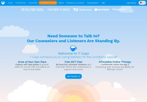 وصف الموقع: 7 Cups هي خدمة للصحة العاطفية ومزود علاج عبر الإنترنت عند الطلب تعمل تقنية التوصيل الخاصة بنا بشكل مجهول وآمن على توصيل الأشخاص الحقيقيين بمستمعين حقيقيين في دردشة فردية. يمكن لأي شخص يريد التحدث عن كل ما يدور في أذهانه أن يتواصل بسرعة مع مستمع مدرب وعاطفي من خلال شبكتنا. لدينا مئات من المستمعين يأتون من جميع مناحي الحياة ولديهم تجارب متنوعة. يتواصل الناس مع المستمعين في 7 أكواب لجميع أنواع الأسباب ، من الأفكار الوجودية الكبيرة إلى الأشياء الصغيرة اليومية التي نختبرها جميعًا. على عكس التحدث إلى العائلة أو الأصدقاء ، لا يحكم مستمع 7 Cups أو يحاول حل المشكلات ويقول ما يجب فعله. مستمعينا فقط يستمعون. انهم يفهمون. إنها توفر لك المساحة التي تحتاجها لمساعدتك على تصفية ذهنك.
