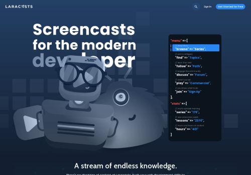وصف الموقع: موقع متخصص فى الFramwork الأكثر شهرة في السنوات الأخيرة و هو الLaravel , الموقع يعطيك احدث الدورات والفيديوهات والاخبار والمقالات في فريموورك الLaravel , موقع مفيد جدا للمبرمجين وسيمكن اي مبرمج تطوير مهاراته عن طريقه .