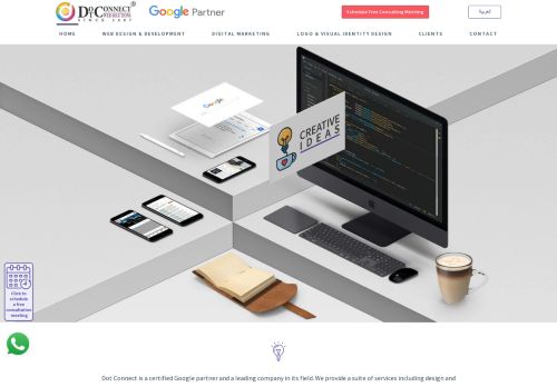 وصف الموقع: تعتبر دوت كونكت شريكاً معتمدًا لشركة جوجل وشركةً رائدةً في مجالها. نحن نقدم مجموعة من الخدمات تشمل تصميم وتطوير وصيانة مواقع الانترنت وتطوير تطبيقات الإنترنت، وحلول التسويق الإلكتروني، وتصميم شعار الشركات والهوية البصرية، وأكثر من ذلك. تمتد خبرتنا لأكثر من عشر سنوات، مع سجل كبير من العملاء الراضيين محلياً وعالمياً.