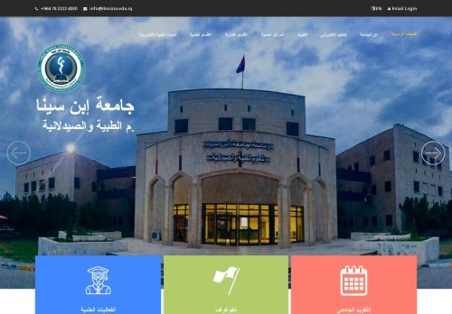 وصف الموقع: جامعةَ ابن سينا للعلوم الطبية والصيدلانية شقت طريقها نحو التميز المنشود بخُطىً حثيثة، فكانت وما تزال انموذجاً للتدريس الجامعي الرصين، ومثالًا يقتدى في رَفعِ كفاية مسيرتي التعلم والتعليم، لتحل بذلك مكانةً ساميةً بين المؤسسات التعليمية الرائدة، مذلِّلةً بذلك كل الصعوباتِ والتحدياتِ الّتي تواجه قطاعَ التعليم في الحقبةِ الدقيقة الّتي نعيشها. فقد خطت جامعةُ ابن سينا بدايةً خطوات راسخة واثقة في الحصول على الاعتماد الاكاديمي لجميع برامجِها الاكاديمية المتنوعة الشاملة، المتوافقة مع احتياجات المجتمع وإِيماناً منها بضرورة التعاونِ مَعَ الجَامِعَاتِ المَحَلَّيَة والإِقْليميَّة والدولية، فِي مُختَلَفِ المَجَالاتِ التعليمية، ومَا يتصِل بها من اتفَاقياتٍ تعنى بالشؤون الأكاديمية وَالبحثية، وضمان جودة التعليم العالِي، وخدمة المجتَمع. وواصلت الجامعَةُ السعي في استحداث البرامجِ الأكاديمية المتخصصة في شتى حقول المعرِفة، الّتِي شكلت فِي مجموعها، رافدًا خصبا لكليات الجامعة الطب وطب الاسنان، فضلاً عن تطوير الكفاية العلمية لأعضاء الهيئة التدريسية وَفق المعايير الدولية، واستقطاب الكوادر التعليمية المتميزة، للارتقاء بِالمسيرة العِلمية بالنَظرِ للمستويات المحلية والاقليمية والدولية. وفي هذَا السياق، لم تدخر الجامعةُ جهدًا فِي تحقيقِ رؤيتها ورسالتها واقعًا ملموساً، فقد عملت على توفيرِ القاعَات الدراسية، والمختبرات العلمية المتطورة وتجهِيزها بِمَا يلائِم متطلبات التعليم العالي ومرتكزاته، والقادرة على تلبية حيثيات التطبيق العلميِ للمعرفَة المتخصصة، المعتمدة على أَحدث التقنيات والنظم التعليمية