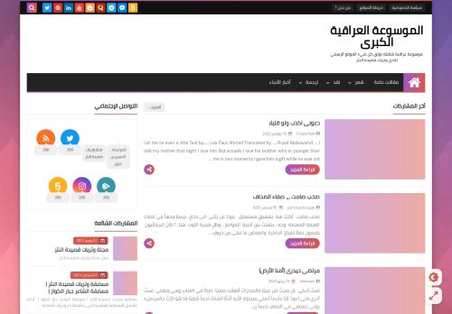 وصف الموقع: الموسوعة العراقية الكبرى - موسوعة عراقية شاملة نوثق كل شي - الموقع الرسمي لنادي وتريات قصيدة النثر - ان موقعنا هو موسوعة أدبية قانونية شاملة للشعر والسرد والقانون في العراق والوطن العربي والعالم ويتضمن ايضا ىالموقع الرسمي لنادي وتريات قصيدة النثر . يمكن للادباء والقانونيين والمدونين وكتاب المقالات الاعزاء نشر مقالاتهم ونصوصهم الادبية وجميع كتاباتهم من شعر وسرد ونقد وقانون ومقالات
