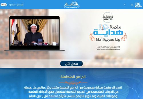وصف الموقع: منصة هداية … منصة إلكترونية تقدم مجموعة من البرامج والدورات التعليمية، تهدف إلى توظيف جميع الإمكانيات التكنولوجية والعلمية لبناء “بيئة معرفية آمنة” يأمن فيها المسلم على نفسه وأولاده في تعلم وفهم الإسلام الصحيح، من خلال مجموعة من المقررات الدراسية التي تساهم في بناء المسلم ثقافيًا وقيميًا وأخلاقيًا، بصورة شيقة وجذابة تتناسب مع ثقافة العصر وأدواته، وذلك تحت إشراف الأمانة العامة لدور وهيئات الإفتاء في العالم.