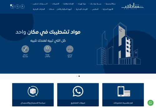 وصف الموقع: تشاطيب متجر متكامل لجميع احتياجات العميل لتكون الشريك الاساسي والمرشد في رحلة التشطيب و التجديد اينما دعت الحاجة إلي المنزل أو المكتب إنارة وإضاءة و المكيف وادوات صحي مقابض أجهزه منزلية ديكور المنزل